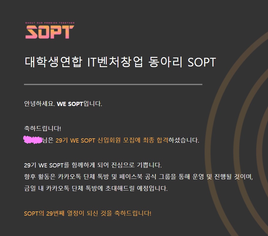 지금 sopt 활동 조금 했지만 다들 너무 좋은 분들이라 재미있게 할 수 있을 것 같습니다!!